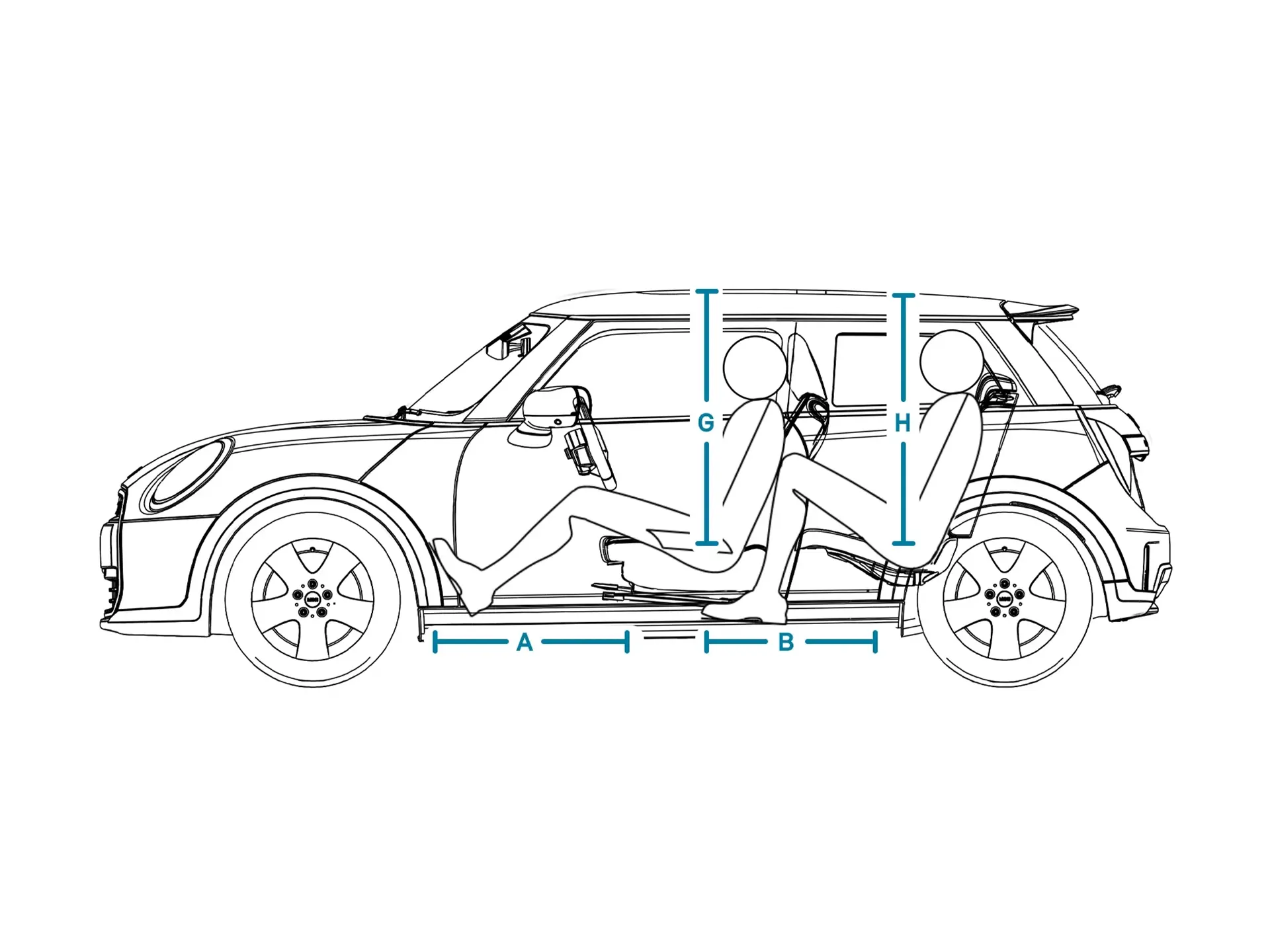 | (G) Wysokość sufitu z przodu z opcją szklanego dachu panoramicznego | 973 mm |