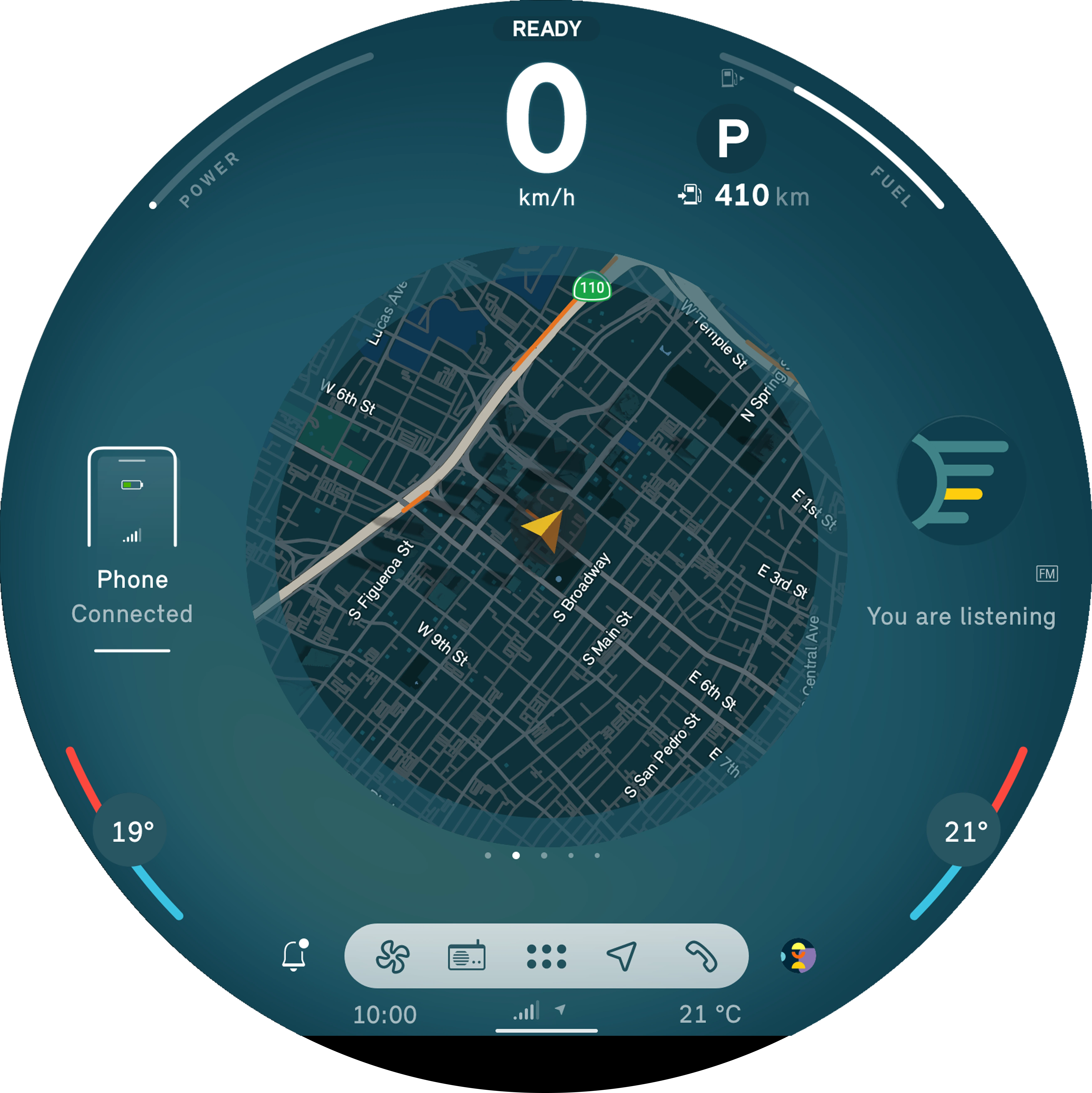 Tryb Efficient wspomaga styl jazdy ograniczający zużycie paliwa/energii i emisję spalin. W tym celu dostosowywane są funkcje komfortu – m.in. wydajność klimatyzacji – oraz sterowanie pracą silnika. Na ekranie widoczne jest uzyskane zwiększenie zasięgu jako dodatkowy zasięg.