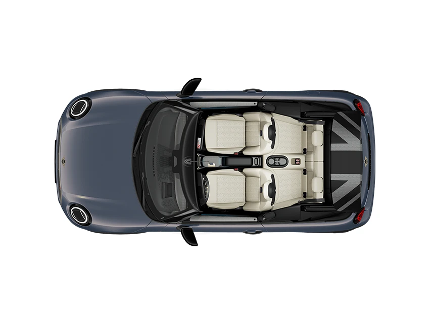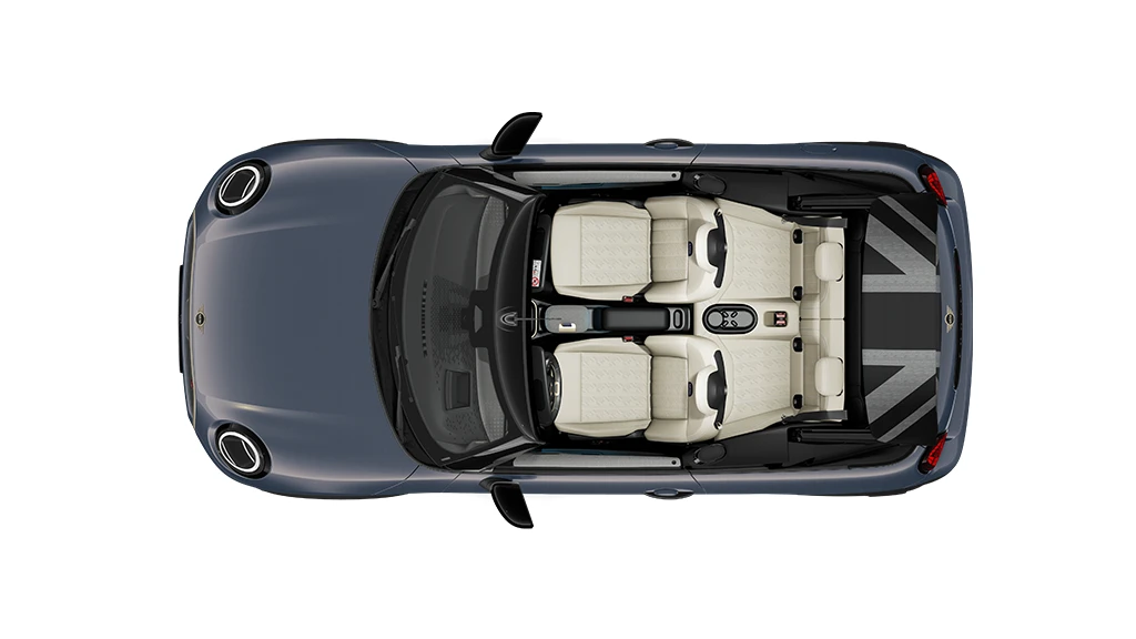 MINI Cooper Cabrio oferuje wygodne miejsca dla czterech osób. Pasażerowie na tylnych siedzeniach mają dużo miejsca na nogi podczas jazdy pod gołym niebem.
